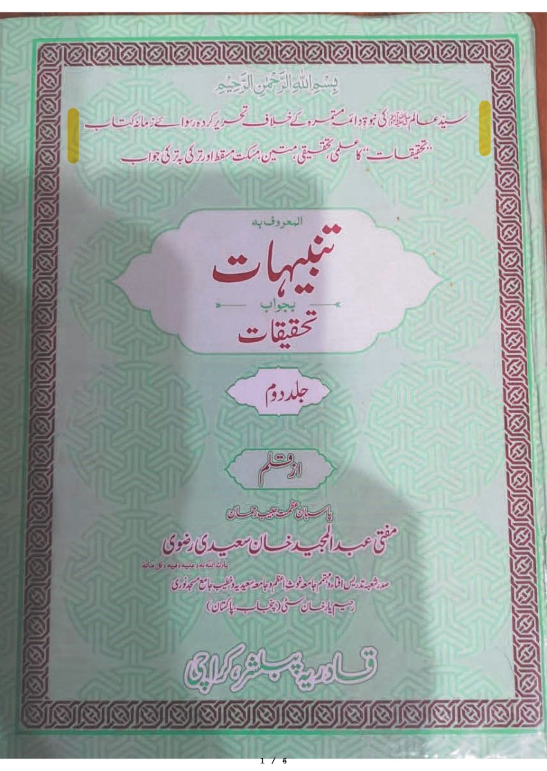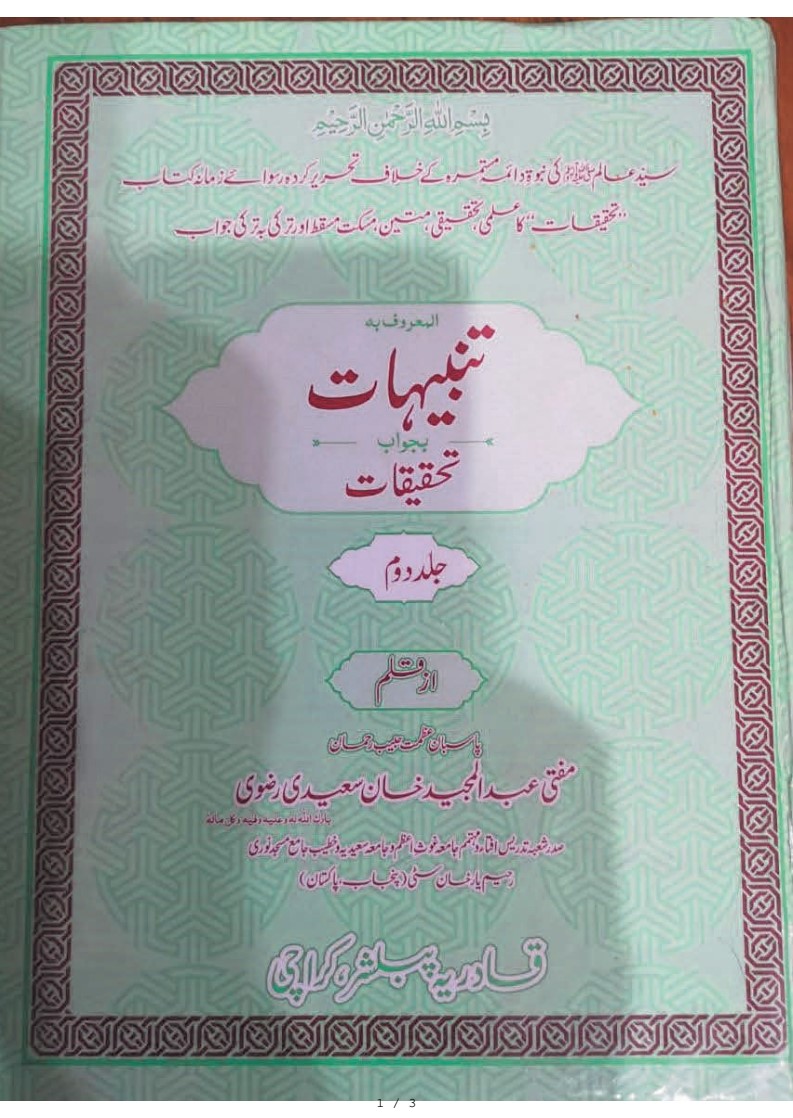 17 - 124000 - ka rad - تنبیہات بجواب تحقیقات جلد ۱ از علامہ عبد المجید خان سعیدی.pdf