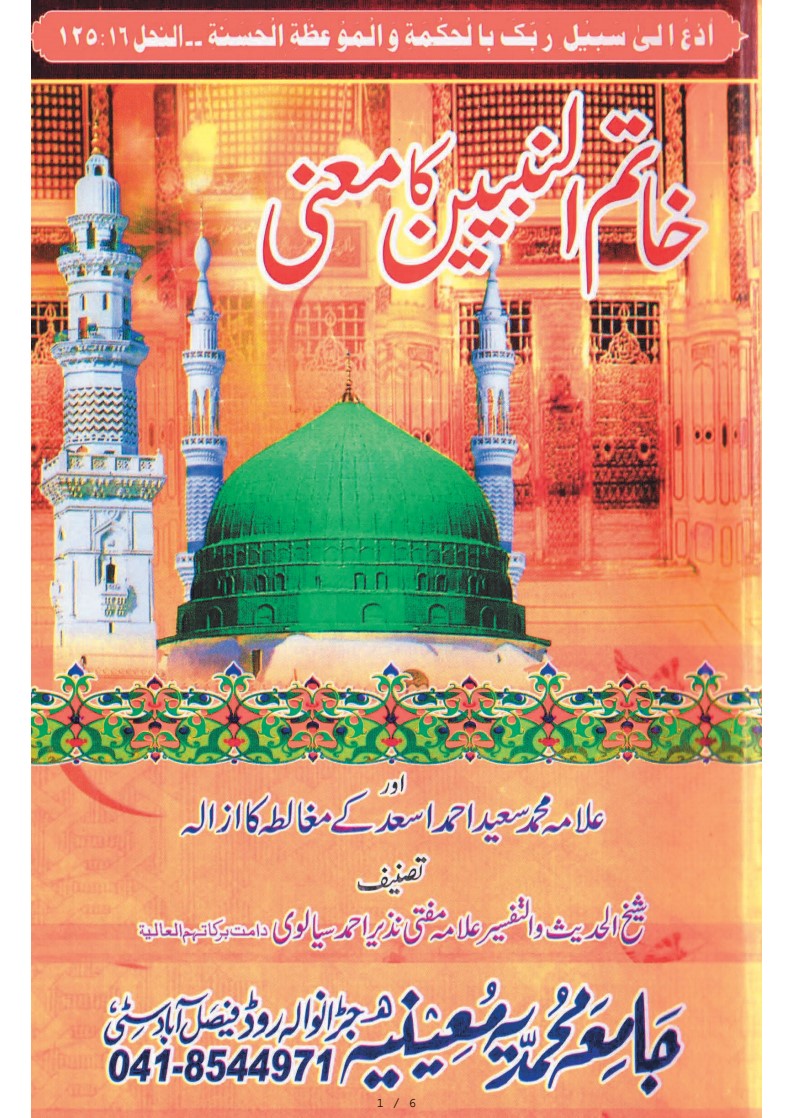2296 - ختم نبوت برھلوی مطلب- Khatim un Nabiyeen ka Maani by Allama Mufti nazeer ahamd sialvi.pdf.pdf.pdf