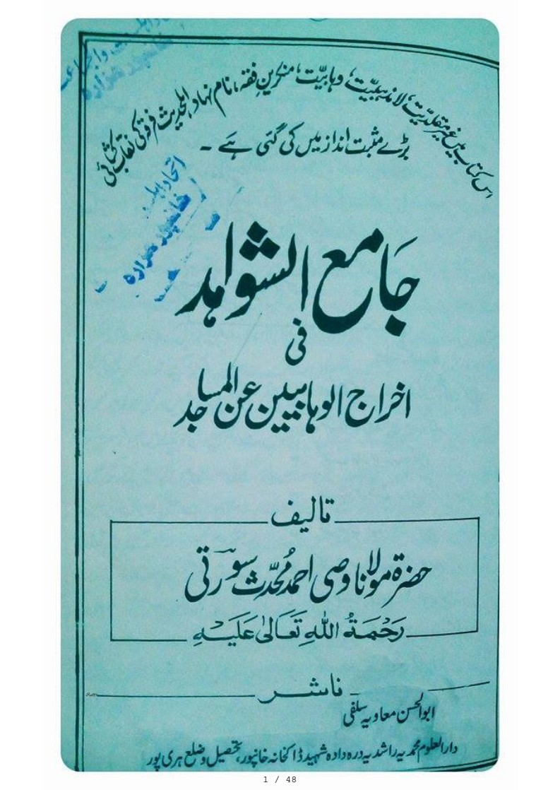 373 - جامع الشواہد فی اخراج الوہابین عن المساجد وصی احمد محدث سورتی.pdf