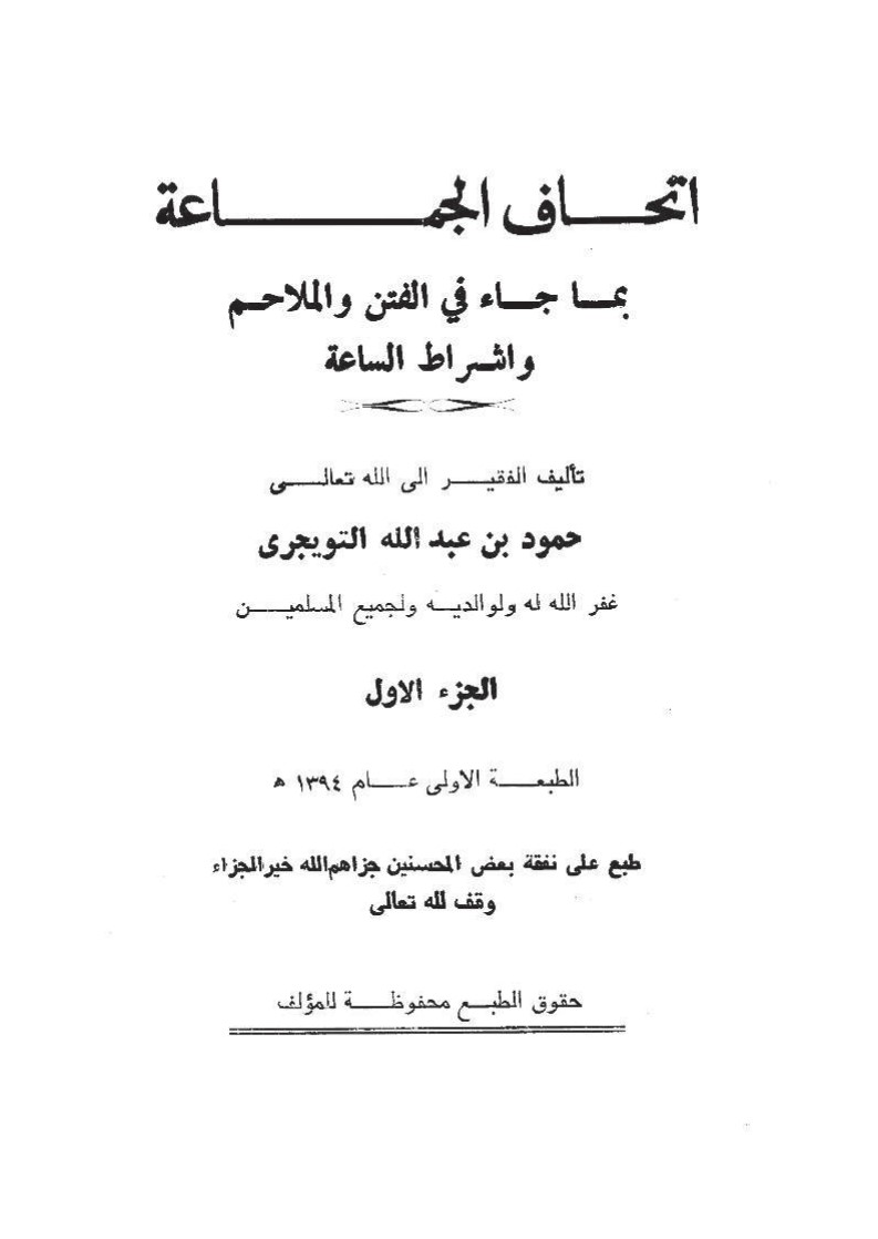 2 - يأتي على الناس زمان لا يبقى من الإسلام إلا اسمه فإتحاف الجماعة بما جاء في الفتن والملاحم وأشراط الساعة - ج 1.pdf