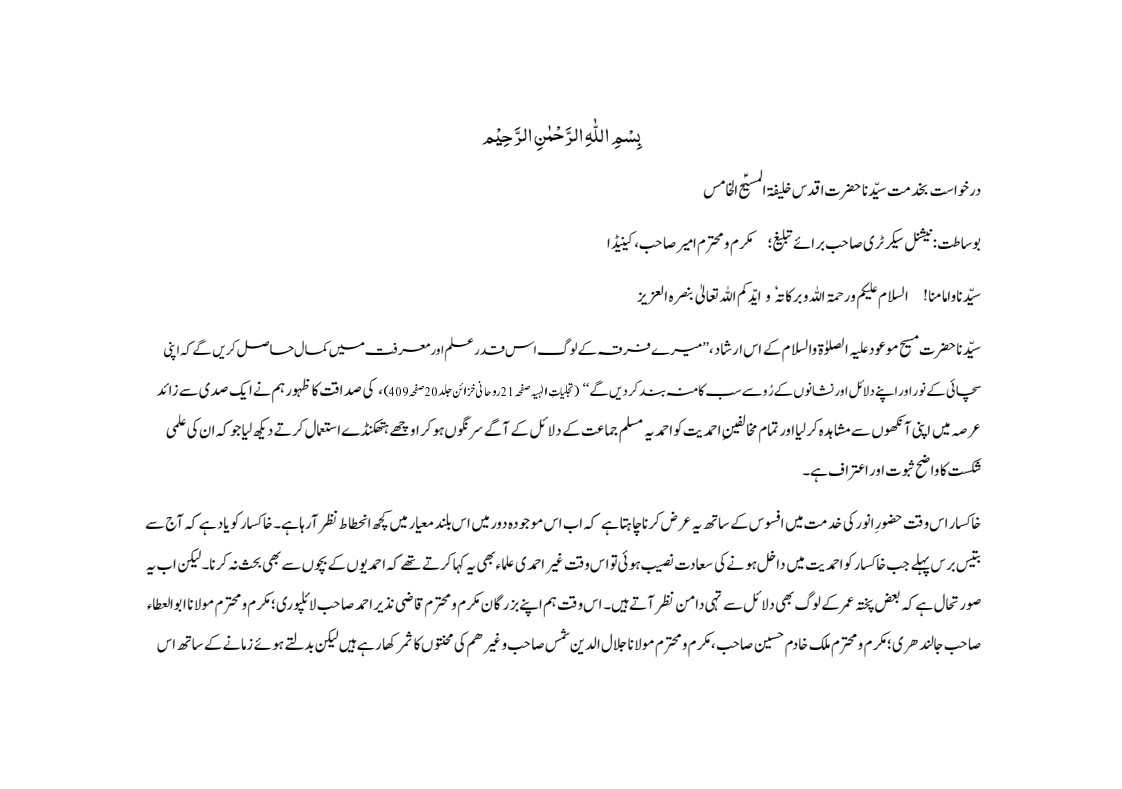 6 - درخواست بخدمت حضور انور برائے لٹريچر و حوالہ جات.pdf