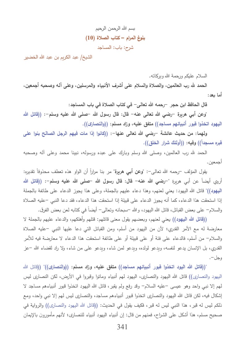 412 - قاتل الله اليهود والنصارى اتخذوا قبور أنبيائهم وصالحيهم بلوغ المرام - نسخة كاملة.pdf