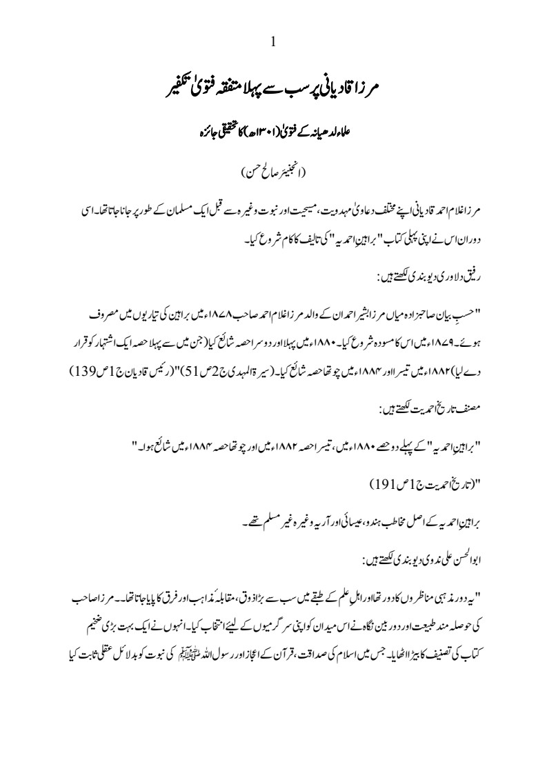 1 - مرزا قادینی پر سب سے پہلا فتویٰ کفر جماعت اہل حدیث نے لگایا۔.pdf