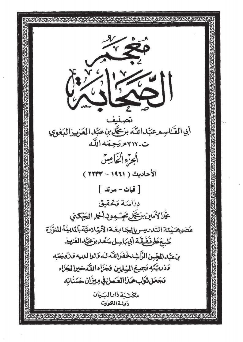 5 - لو كان نبياً لم يمت، فقلت قد مات الأنبياء قبله -- معجم الصحابة - ج 5 - مقدمة التحقيق.pdf