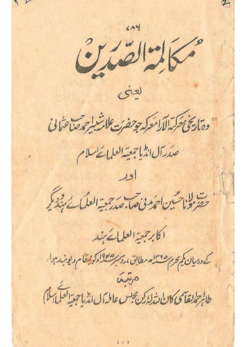 4 - pakistan - musalm leeg %2B%2B%2Bmasjad jab ban gayi - ik jawab - مکتوبات شیخ الاسلام حسین احمد مدنی جلد-002.pdf
