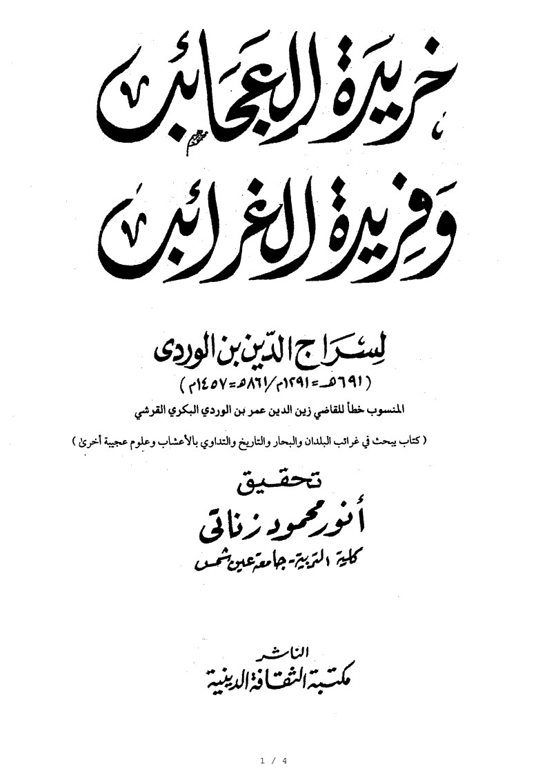 1 - وقالت فرقة نزول عیسی - خريده العجائب و فريده الغرائب - سراج الدين ابو حفص عمر بن الوردي.pdf